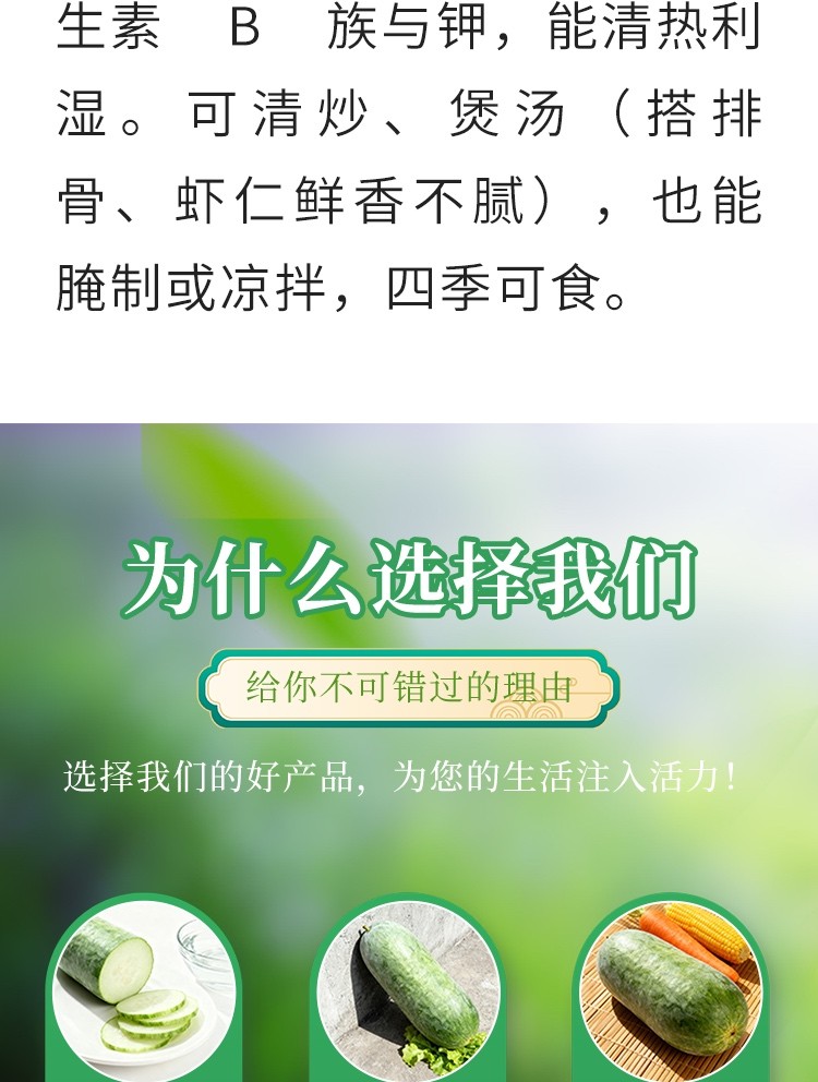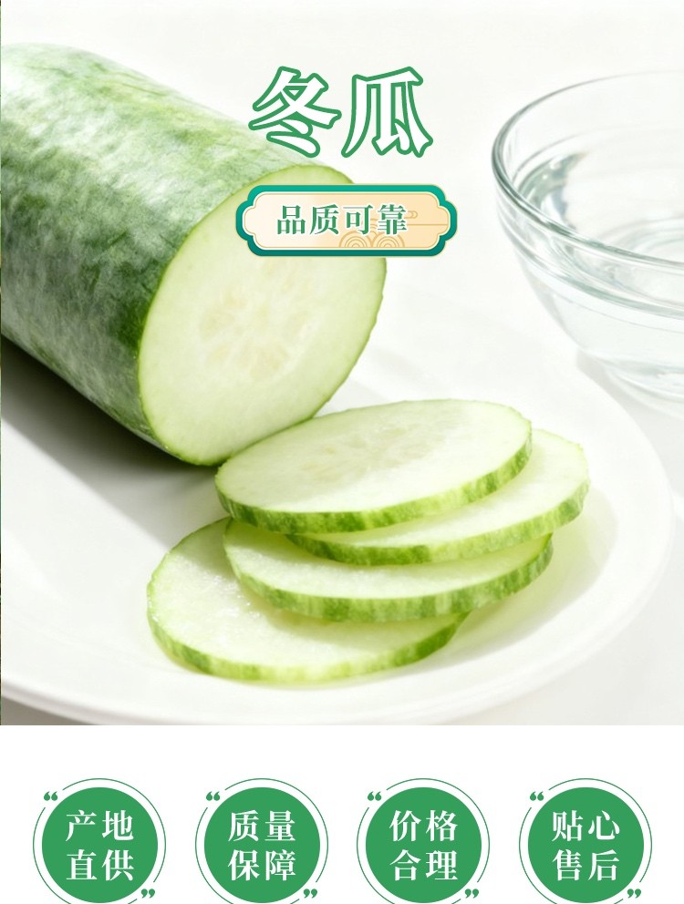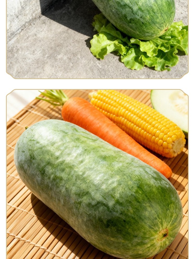 冬瓜夏季常见,广东、山东黑皮冬瓜为佳,外皮墨绿覆蜡粉,果肉洁白厚实。含水量超 96%,热量低,含维生素 B 族与钾,能清热利湿。可清炒、煲汤(搭排骨、虾仁鲜香不腻),也能腌制或凉拌,四季可食。