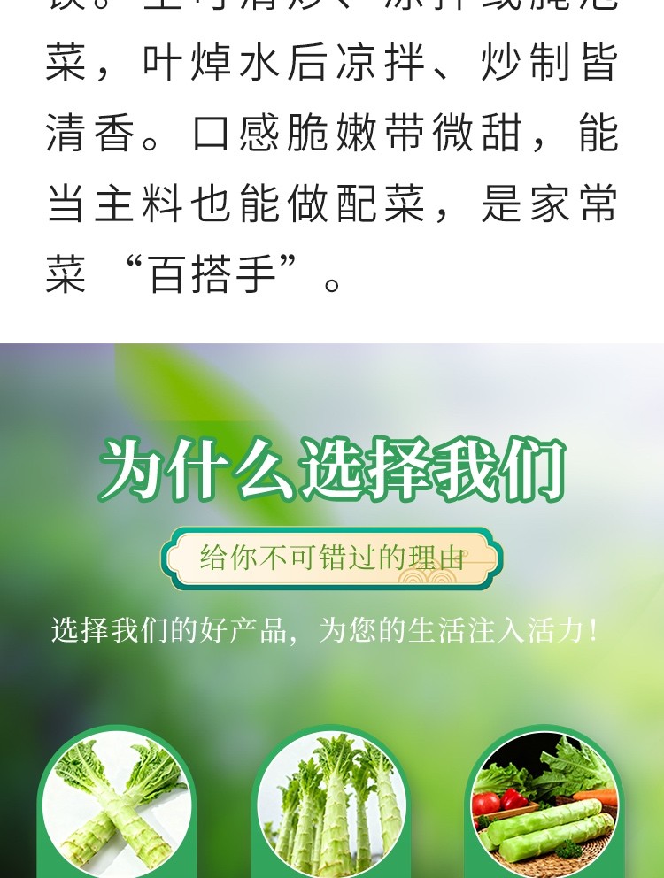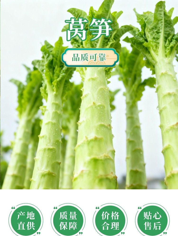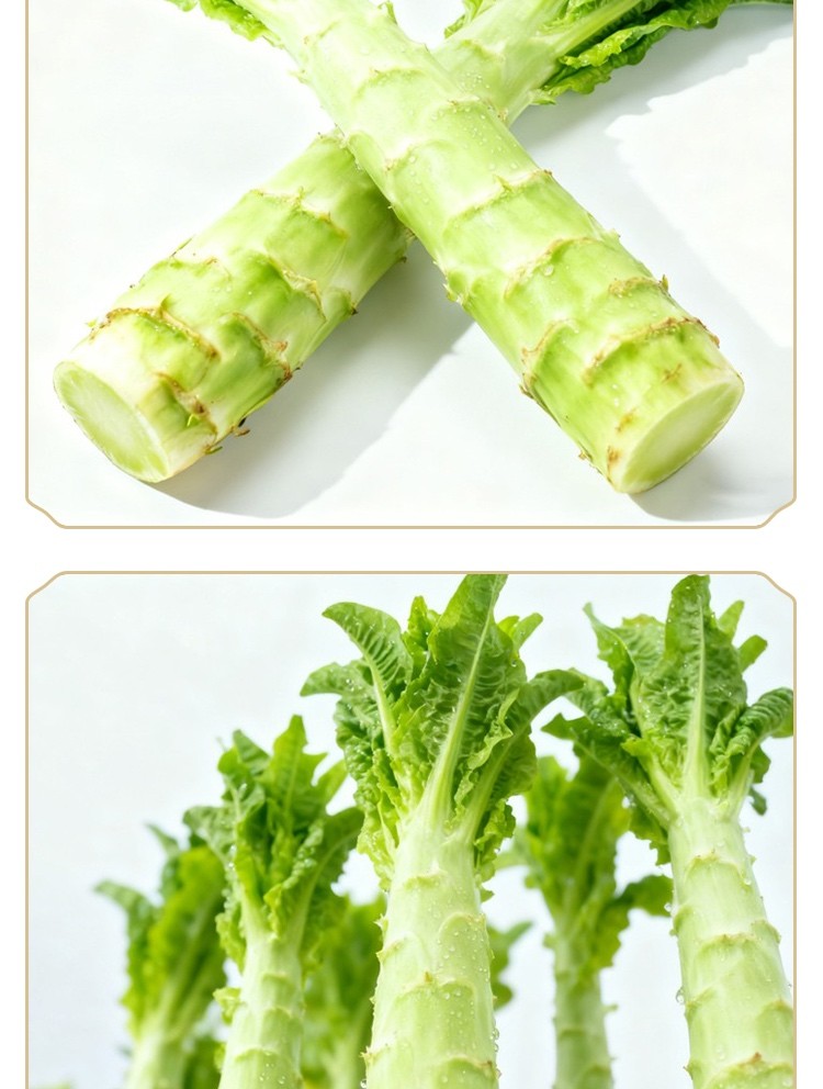 莴笋原产地中海,春季较嫩,茎部翠绿粗壮,去皮后肉白脆嫩,叶亦可食。含膳食纤维、维生素 K 及钾、镁,促肠道蠕动。茎可清炒、凉拌或腌泡菜,叶焯水后凉拌、炒制皆清香。口感脆嫩带微甜,能当主料也能做配菜,是家常菜 “百搭手”。